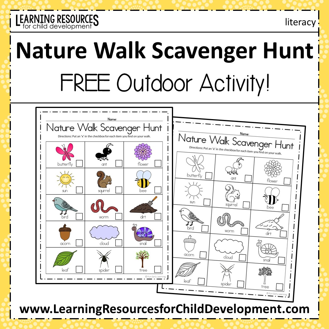 Get tips on how to spark a discussion about plants and animals, too..First, download your free printable nature scavenger hunt..Take pictures of each of the items..Tap here to see more..Nature walks are a great way to build family memories, and it’s always fun to have a memento or keepsake to remember time spent outdoors..Don’t have a printer or are strict with your ink?.Whether you're on your own or have kids in tow, have some fun with this fun nature walk scavenger hunt..This free printable nature scavenger hunt for toddlers and preschoolers is great for summer fun!.Everything you need to know about a nature walk scavenger hunt with the kids and 6 printable sheets you can download and use to get your kids outside..Hp thanks khan academy kids for their educational printables..Older children may prefer to use the nature walk scavenger hunt without pictures..This scavenger hunt list contains 16 items:.Nature scavenger hunt {w/free printable} inspire kids to explore..Here are 0ver 20 outdoor printable activities you can try in your own backyard or during your next nature walk around the..Beach, nature, backyard, camping, playground, and blank scavenger hunts for the kids.